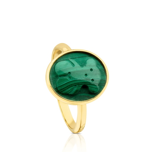 Anillo TOUS Camee con baño de oro 18 kt sobre plata y malaquita. Motivo: 1,3 cm. Pieza fabricada con plata de primera ley con baño de oro de 18 a 23 kt y 3 micras de espesor. Esta calidad garantiza una mayor durabilidad de la joya.