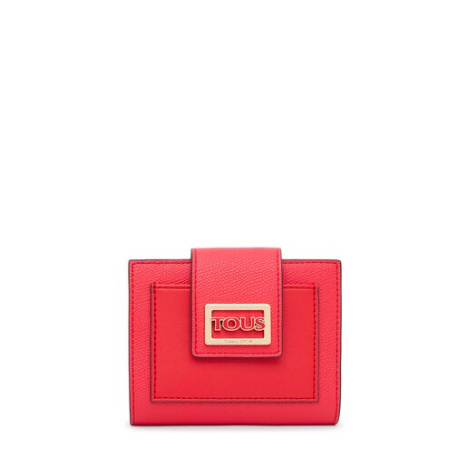 Cartera Pocket TOUS Funny en color rojo de piel sintética con textura saffiano combinada con piel sintética lisa. El cierre es con botón a presión. Cuenta con un bolsillo exterior abierto para tarjetas. En el interior hay un bolsillo con cremallera para monedas, un bolsillo grande para billetes, 3 ranuras para tarjetas y 2 compartimentos para diferentes pertenencias. Medidas (alto x ancho x fondo): 10 x 12 x 3 cm.