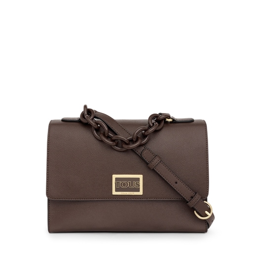 Menos es más. Líneas mínimal, formas estructuradas y tendencia colorblock con cadena. Este bolso city color marrón en piel sintética con textura saffiano forma parte de la colección TOUS Funny. El estilo más sofisticado cobra protagonismo.