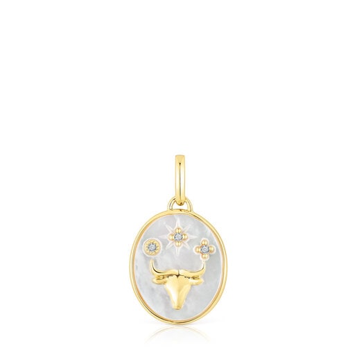 Luce las estrellas de tu zodiaco con nuestro colgante Tauro con baño de oro 18 kt sobre plata, nácar y topacios de la colección TOUS Horoscope.