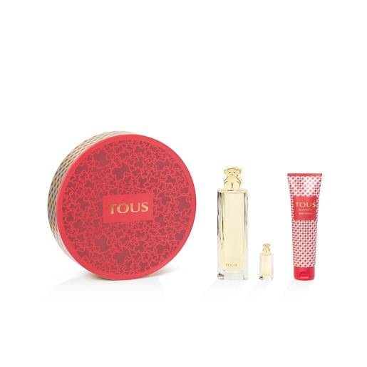 Estuche Eau de Parfum TOUS Metallic Vichy que incluye una fragancia EDP de 90 ml, una miniatura y un frasco de loción corporal de 150 ml.