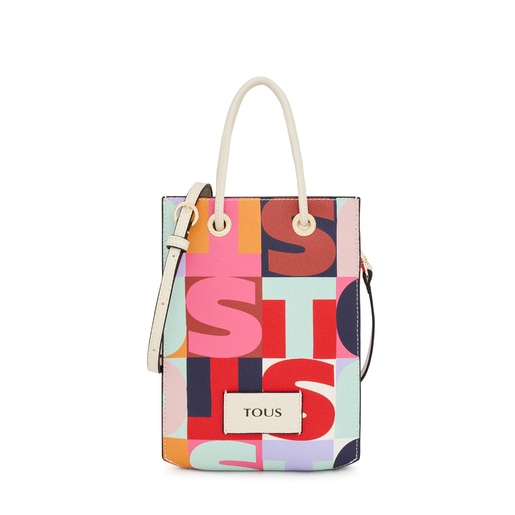 Mini bolso bandolera TOUS de la colección Mimic de lona en color beige y pulido con un vivo de piel sintética. Etiqueta externa con logo. Asas fijas y opción de asa con ganchos extraíble y ajustable. Bolsillo interior con logo. Medidas (alto x ancho x fondo): 20 x 16 x 6 cm.