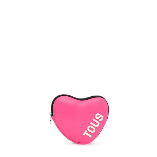 Neceser TOUS Carol en forma de corazón, elaborado con piel sintética y de color fucsia. Cierre de cremallera. Medidas (alto x ancho x fondo): 13 x 14,5 x 2 cm.