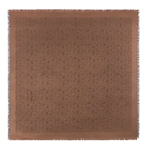 Pañuelo TOUS Kaos Mini de jacquard marrón de forma rectangular con el acabado de los bordes deshilachado. Medidas: 120 x 120 cm. Composicion: modal, algodón y lurex.