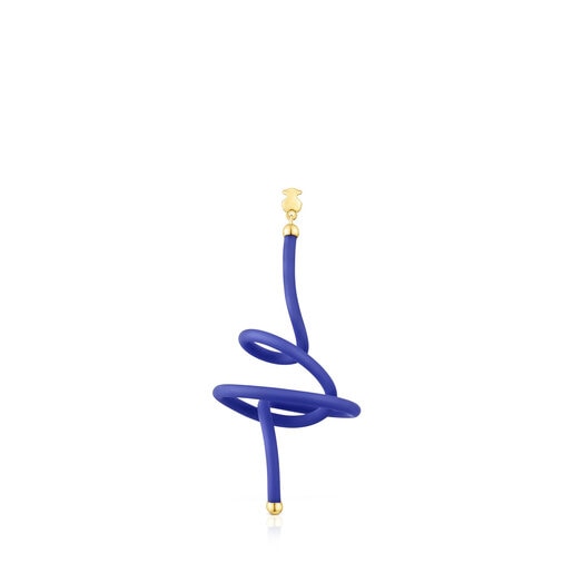 Pendiente suelto TOUS Beach Caucho de color azul en forma de espiral con dos detalles con baño de oro 18 kt sobre plata de 4 mm puliendo los extremos de la pieza, más en la parte superior pegado al perno motivo oso. Motivo: 6 mm. Pieza fabricada con plata de primera ley con baño de oro de 18 a 23 kt y 3 micras de espesor. Esta calidad garantiza una mayor durabilidad de la joya.