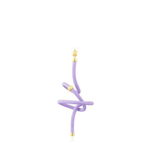 Pendiente suelto TOUS Beach Caucho de color lila en forma de espiral con dos detalles con baño de oro 18 kt sobre plata de 4 mm puliendo los extremos de la pieza, más en la parte superior pegado al perno motivo estrella y en la parte central del pendiente una anilla. Motivo: 6 mm. Pieza fabricada con plata de primera ley con baño de oro de 18 a 23 kt y 3 micras de espesor. Esta calidad garantiza una mayor durabilidad de la joya.