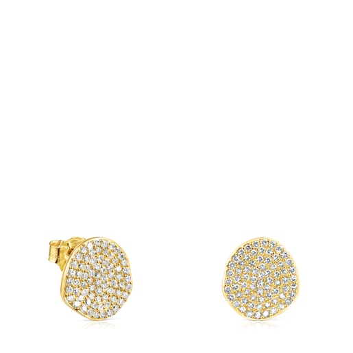 Pendientes pequeños con baño de oro 18 kt sobre plata y diamantes Nenufar