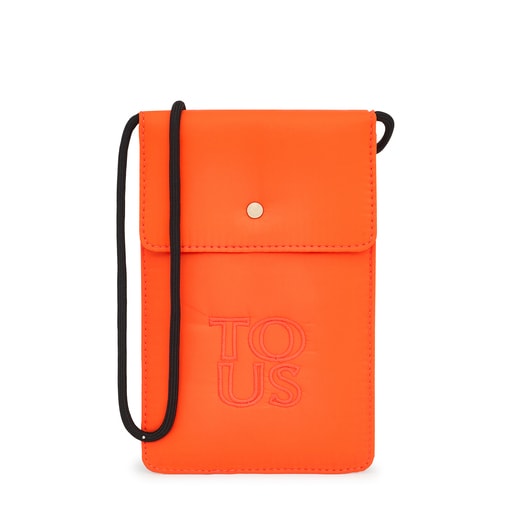 Portamóvil TOUS Balloon Soft de nylon reciclado en color naranja. Cierre de solapa con botón a presión. Asa bandolera ajustable con cordón deslizante. Medidas (alto x ancho x fondo): 19 x 12,5 x 1 cm.