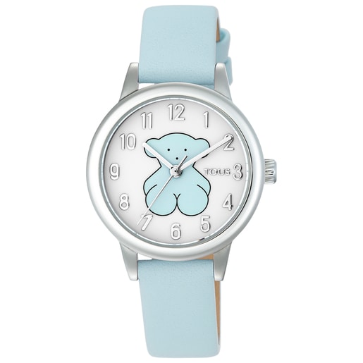 Reloj analógico New Muffin de acero con correa de piel azul