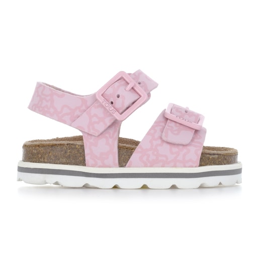 Sandalia Baby TOUS ajustable con hebillas en la parte delantera y cierre de pulsera al tobillo en simil piel estampada Kaos a tono. Plantilla anatómica de piel y suela gruesa efecto corcho con goma ondulada blanca. COMPOSICIÓN: 100%Sintético / Planta: 100%Piel Vacuna / Suela: 100%Sintético. Color Rosa.