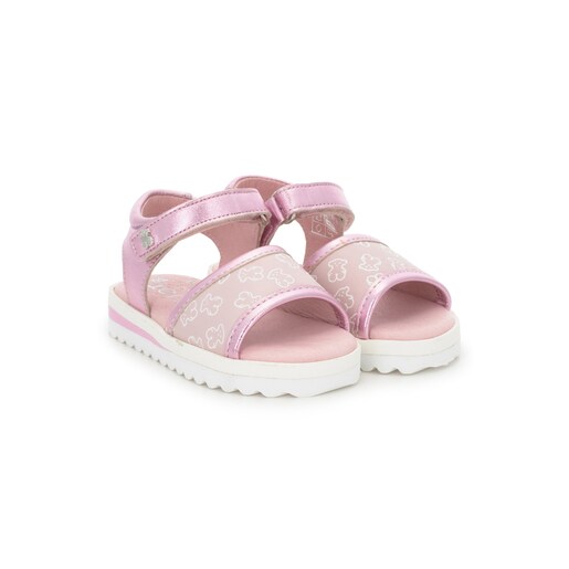 Sandalia Baby TOUS de piel brillante con tira ancha frontal con ositos en glitter. Cierre de cinta adherente con detalle de oso metálico. Interior forrado de piel y suela gruesa y dentada. COMPOSICIÓN: 100% Piel Vacuna de color Rosa / Forro: 100% Piel Porcina / Suela: 100% Sintética.