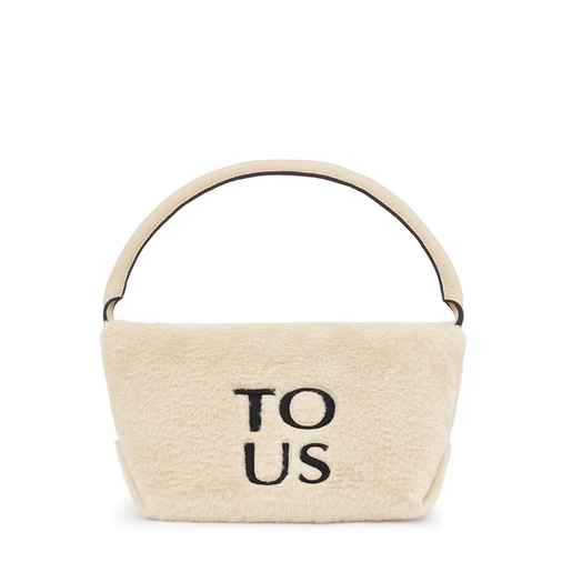 Large TOUS Balloon Wild shoulder bag in beige faux fur combined with synthetic leather trim. Handbag with zipper fastening and fixed shoulder strap. Measurements (height x width x depth): 15 x 28 x 14.5 cm.