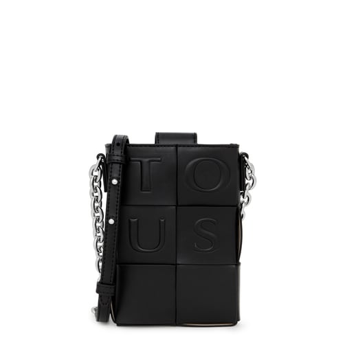 Get on board with the latest trend: handbags with braided effect, logomania and in mini. This handbag in black with its interlacing panels in synthetic leather belongs to the TOUS Damas collection. Refined lines for a more desired urban look.