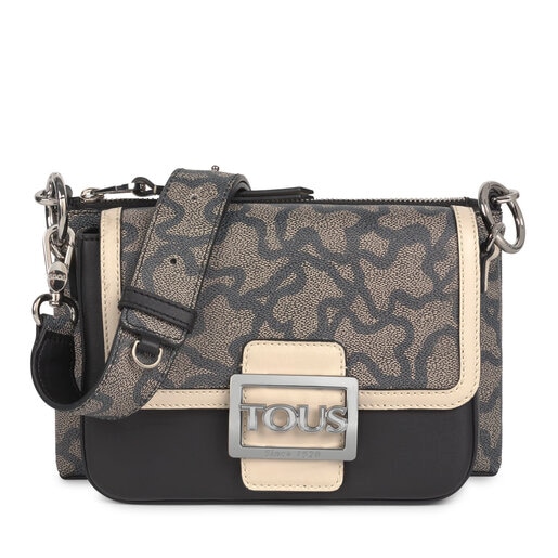 TOUS Kaos Icon double crossbody bag in waterproof canvas combined with leather-effect vinyl with black and white Kaos print. The bag has two separate parts and a long, detachable and adjustable strap. Zipper and magnetic button closure. Measurements: 23.5 x 14.5 x 11.5 cm
