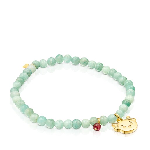 TOUS Chinese New Year elastic bracelet with amazonites, treated ruby detail and a vermeil silver ox. Ox size: 13mm.
