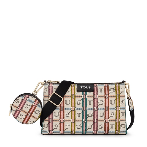 Logomania in full color. This crossbody bag with pendant change purse and monogram print in canvas with synthetic leather details belongs to the TOUS Crossroad collection. Fun and fresh for a casual and enjoyable street-style.