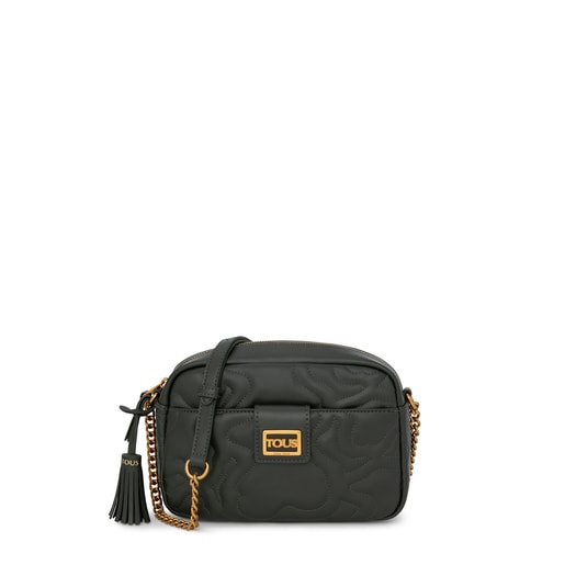 Small TOUS shoulder bag from the Kaos Dream collection in padded polyurethane in the shape of bears with a green leather effect finish. Long adjustable shoulder strap. Zip closure. One inside pocket and two flat outer pockets. Measurements: 8 x 25 x 16 cm.