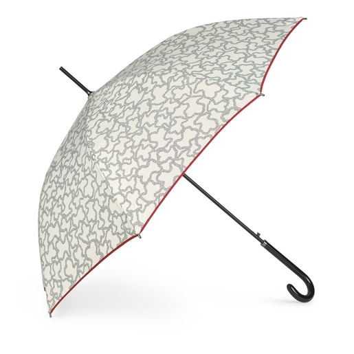 Large Tous umbrella from the Kaos Icon polyester collection with beige and black print. Length: 90cm