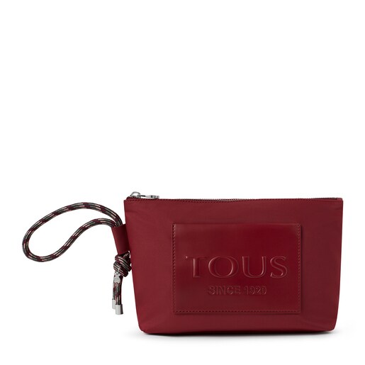Large TOUS toiletry bag from the Empire Soft Chain collection in burgundy recycled nylon. Fastens with a zipper, cord wristband. The toiletry bag has 2 flat pockets, exterior and interior. Measurements: 8 x 26 x 16 cm.