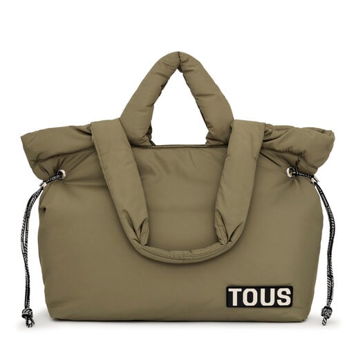 Large TOUS Carol Soft tote bag in khaki-colored recycled polyester. Zipper closure. Interior pocket with zipper. Fixed handles and shoulder straps. Measurements (height x width x depth): 27 x 48 x 17.5 cm.