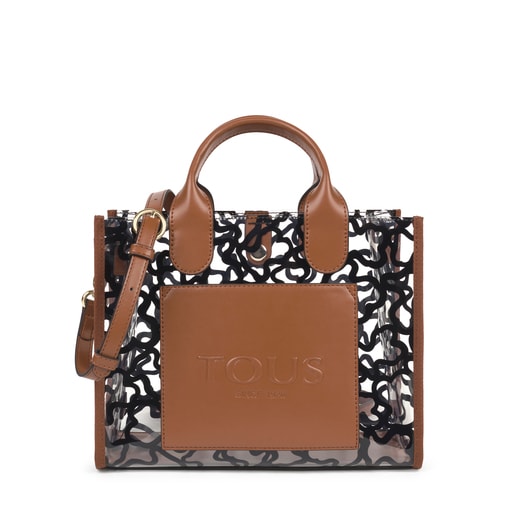 Medium TOUS shopping bag from the Amaya Vinyl collection in transparent vinyl with a bear print and sections in brown leather-effect polyurethane. Magnetic button closure. Handles and adjustable and detachable crossbody strap. Flat outer pocket. Measurements: 15 x 31.5 x 27.5 cm.