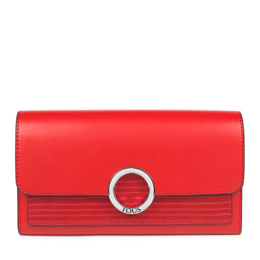 Medium TOUS wallet from the Audree collection in red leather-effect vinyl. Snap button closure. Interior: pocket with zipper, eight card compartments and three large compartments for miscellaneous items. It has a gold-colored metal ring. Measurements: 11 x 19.5 x 3.5 cm.