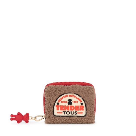 Medium TOUS Amaya Joy change purse in taupe colored synthetic sheepskin with decorative patches for a youthful and casual style. Zipper closure. It includes a pretty bear pendant detail. This fantastic soft change purse will become your perfect accessory this winter. Measurements (height x width x depth): 9 x 11 x 3 cm.