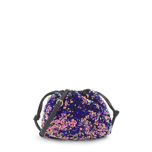 Mini TOUS Liz collection bucket bag with multi-lilac sequins. Measurements: 6x20.5x15.5 cm. Adjustable crossbody strap. Ruck closure.