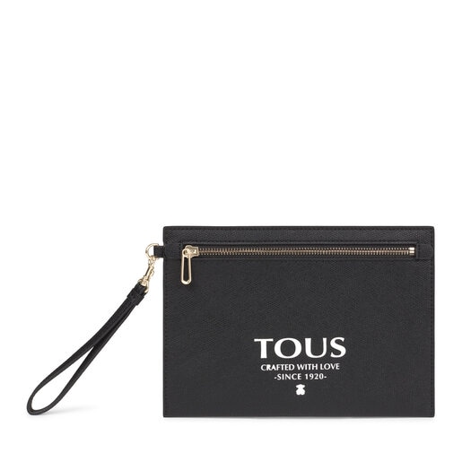 TOUS Essential collection clutch bag in Saffiano-effect vinyl combined with leather-effect vinyl in black. Zipper closure. Short, detachable handle. Measurements: 24 x 17 x 1 cm.