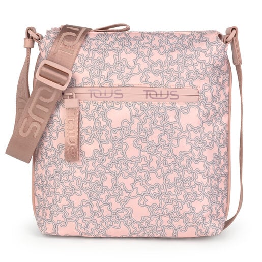 TOUS Flat nylon crossbody bag from the Kaos Mini Sport Collection with pink tone print. Zipper closure. Adjustable strap. Interior pocket with zipper. Exterior pocket with zipper. Measurements: 25.4 x 24 x 4.5 cm.