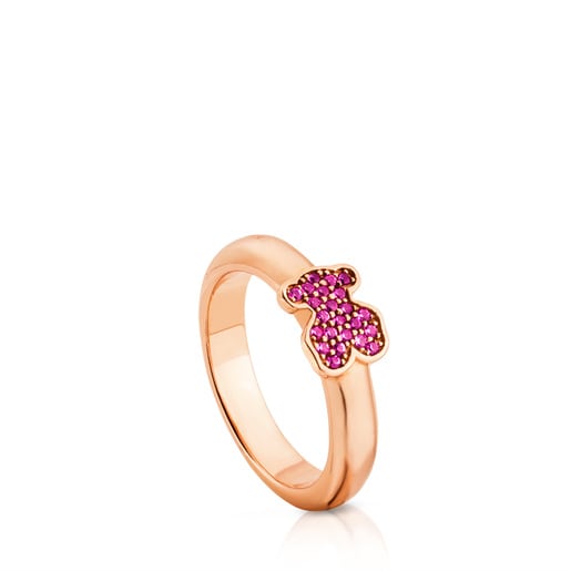 TOUS Gen ring in rose vermeil silver and ruby. Total weight: 0.173ct. Vermeil: Sterling silver plated with a layer of 18kt rose gold.