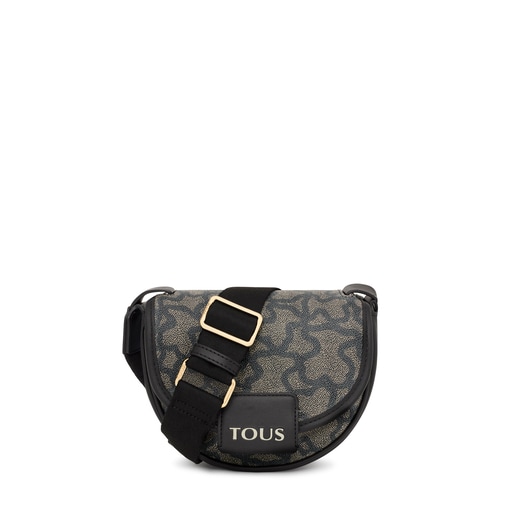 Small TOUS half-moon-shaped crossbody bag from the Amaya Kaos Icon collection in black canvas and finished with synthetic leather trim. Flap closure with metal interlocking button clasp. Long adjustable strap. Measurements (height x width x depth): 16 x 19 x 8 cm.