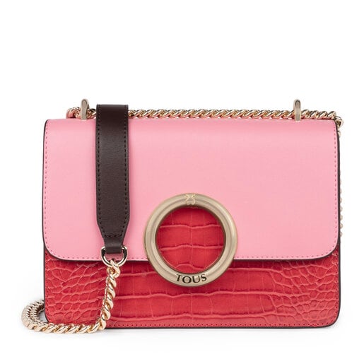 TOUS small crossbody bag from the Audree collection with leather-effect vinyl in pink and red. The handbag features a large chain strap. It has 2 inner compartments and a pocket with zipper. Magnetic button closure. Measurements: 22 x 15 x 9 cm