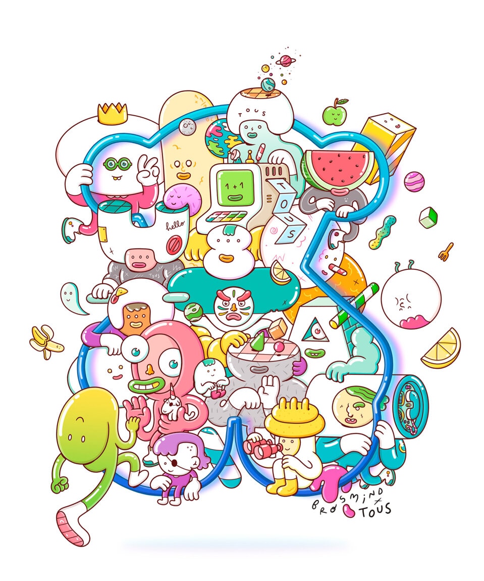 “For the work, I wanted to produce a design that was very lively and fun. I decided to use a mix of textures and vibrant colors, where TOUS’ iconic bear would emerge from the textures while being part of that mix.”