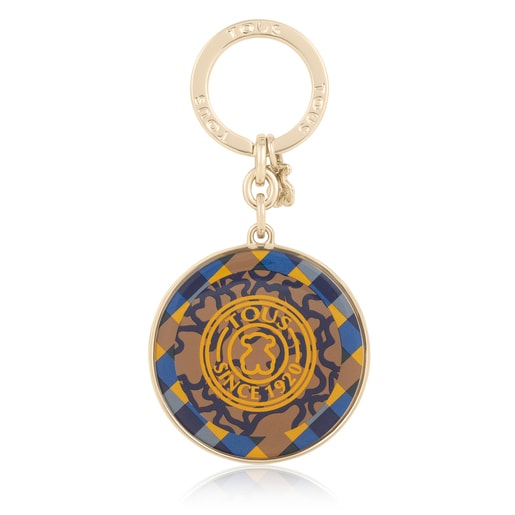 TOUS key ring from the Kaos Stamp collection in metal with yellow and blue print. Measurements: 6 x 4 cm