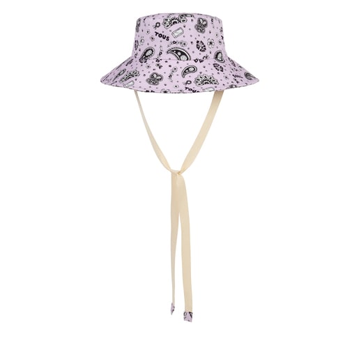 כובע TOUS Gems Band עם שוליים רחבים והדפס סגול. כולל שתי רצועות לקשירה. מידה אחת.