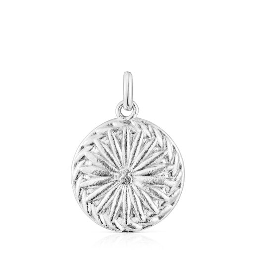 מדליון TOUS מקולקציית Efecttous עשוי ורמיל כסף בשילוב מוטיב קרושה עם דובון במרכז. גודל המדליון: 18 מ"מ. פריט זה אינו כולל את השרשרת.