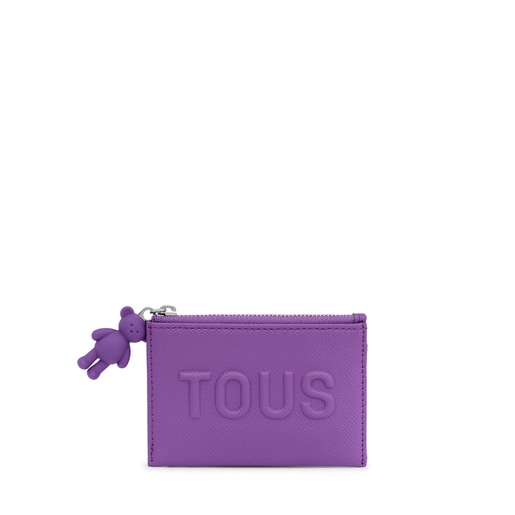 מחזיק כרטיסים מסדרת La Rue של TOUS מעור סינטטי בצבע לילך. מכיל שלושה חריצים לכרטיסים וכיס עם רוכסן למטבעות. כולל קישוט דובון קטן על לשונית הרוכסן. מידות (גובה x רוחב x עומק): 8 x 11.5 x 1.5 ס"מ.