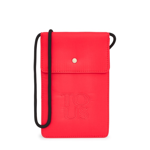 מנשא לטלפון נייד מסדרת Balloon Soft של TOUS, עשוי מניילון ממוחזר בצבע אלמוג. סגירת דש עם לחצנית תיקתק. רצועת הצלבה הניתנת להתאמה באמצעות חרוז החלקה. מידות (גובה x רוחב x עומק): 19 x 12.5 x 1 ס"מ.