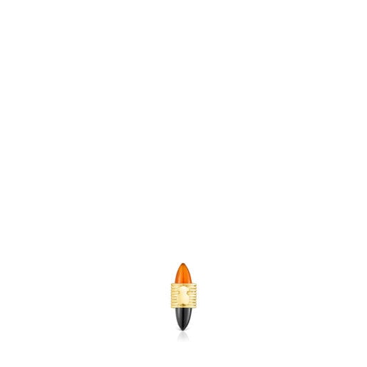 עגיל 1/2 בסגנון הליקס מסדרת Lure של TOUS, העשוי זהב בשילוב אבני חן עם עיטור דובון בגודל 2.8 מ"מ במרכז מוטיב הזהב המקשר בין אבן הקרנליאן לאבן האוניקס. גודל אבני החן: 5 x 2.5 מ"מ. גודל מוטיב: 10 מ"מ. סוגר אחורי.