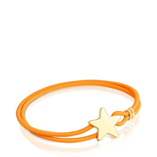צמיד אלסטי מסדרת Sweet Dolls של TOUS בצבע כתום, בשילוב צ'ארם כוכב מוורמיל כסף. גודל הצ'ארם: 14 x ‏14.6 מ"מ. אורך הצמיד: 17 ס"מ.