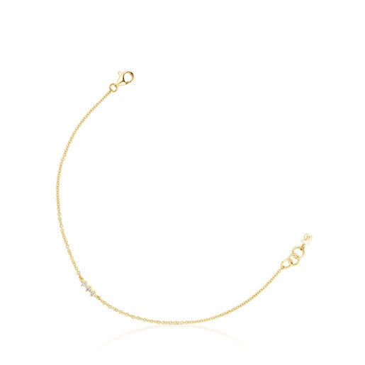 צמיד פס Les Classiques של TOUS עשוי זהב 18 קראט בשילוב שלושה יהלומים בחיתוך מבריק ובמשקל כולל של 0.05 קראט. איכות היהלומים: H/SI. אורך הצמיד: 17.5 ס''מ. סוגר לובסטר.