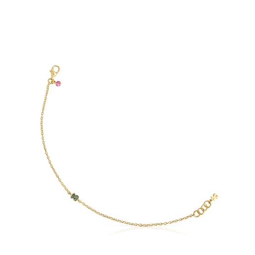 צמיד של TOUS New Motif מכסף ווירמייל עם עיטור דוב מכרום דיופסייד בגודל של 4.6 מ''מ x 3.8 מ''מ ורובי מטובל בגודל של Ø3 מ''מ. אורך הצמיד: 17.5 ס''מ.