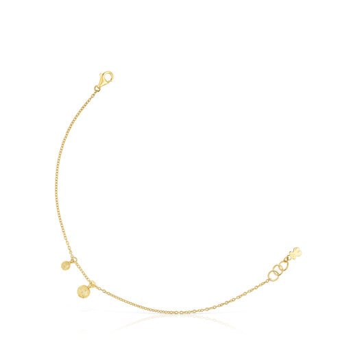 צמיד מסדרת Sylvan של TOUS, עשוי זהב 18 קראט עם שני מוטיבים נתלים בצורת כדור. קוטר הכדורים: 4 מ"מ ו-5 מ"מ. אורך הצמיד: 17.5 ס''מ. סוגר לובסטר.