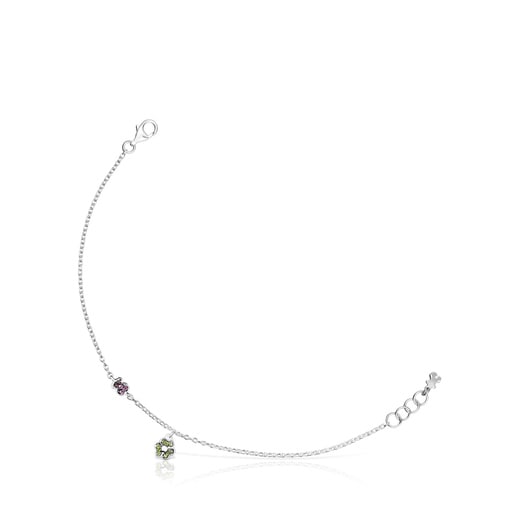 צמיד TOUS New Motif מכסף עם עיטור פרח מכרום דיופסייד ואמטיסט