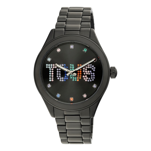אף אחד לא יפספס את האישיות שלך עם שעון אנלוגי מפלדת IP שחורה, בעיצוב הכולל לוח מחוגים ממתכת, לוגו וקריסטלים צבעוניים מקולקציית TOUS T-Logo. נגיעה של חוצפה בעיצוב בויפרנד שילווה אותך 24/7.