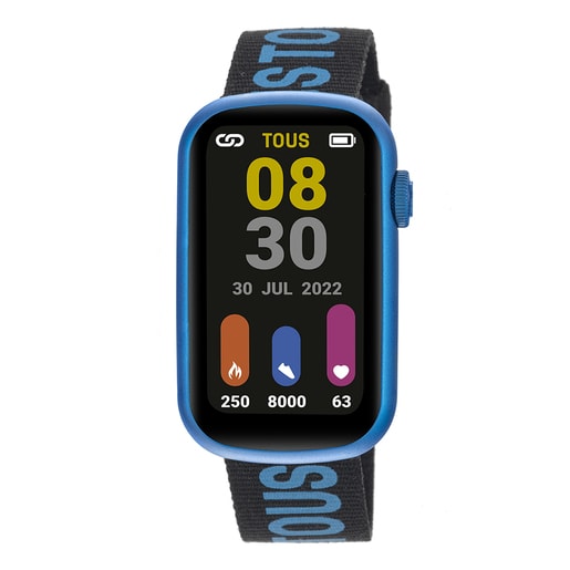 שעון חכם מסדרת T-Band של TOUS, עם רצועה כפולה מתחלפת וגוף PC בצבע כחול. רצועת ניילון עם לוגו משתלב בצבע כחול על רקע כחול נייבי ורצועת סיליקון כחולה עם דוגמת דוב. תאימות: Android 7.0 ו-iOS 12.0 ואילך. תצוגה / LCD: מסך מגע מלבני בגודל 1.47 אינץ' TFT-DLC צבעוני (מגע מלא). מערכת הפעלה: RT OS. קישוריות: גרסת Bluetooth: BLE 5.0. זיכרון RAM: 128kb, Flash ROM 64MB. סוללה: 140 mAh, סוללת ליתיום נטענת 3.8 V/2.9 גרם, לטעינה עם כבל מגנטי, 5-7 ימים במצב פעולה ו-8-10 ימים במצב השהיה. מערך שבבים: Realtek RTL8762CK ומד קצב לב: HRS 3300 – ARM Cortex-M0 – מהירות 53 MHz. עמידות במים: IP68. פונקציות: 5 עיצובי לוח שעון של TOUS ולוח אחד מתחלף מאפליקציית TOUS WEAR, שעות, דקות, חודש, יום, יום בשבוע, פעילות יומית עם מונה צעדים, מונה קלוריות, מרחק נסיעה נמדד במיילים ובקילומטרים, פעילות ספורט (הליכה, ריצה, הליכת שטח, רכיבה על אופניים, הליכון/אליפטיקל, יוגה, וכדורסל), מד דופק, ניטור שינה, מד לחץ דם (בקירוב), מד חמצן בדם (בקירוב), התראות (שיחות, הודעות WhatsApp, הודעות דוא"ל, הודעות SMS, Facebook וכו'), נתוני מזג אוויר, מעקב מחזור וביוץ, שעון עצר 1/10 שניות, בקרת מוזיקה, איתור טלפון ובקרת מצלמה. סגירה עם אבזם אלומיניום.