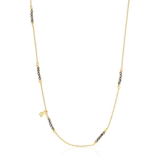 שרשרת מסדרת Bold Bear של TOUS, עשויה ורמיל כסף בשילוב אבני פיריט. שרשרת חוליות ורמיל כסף בשילוב אבני חן משובצות ומוטיב דובון מוורמיל כסף. גודל אבני החן: 2 מ"מ. גודל הדובון: 5.35 מ"מ. אורך השרשרת: 45-40 ס"מ. סוגר טבעת קפיצי.