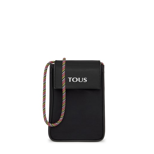 תיק יד TOUS Empire Cotton מיני עשוי מבד גברדין עמיד למים בצבע שחור בשילוב עיטור מעור סינתטי. הוא נסגר בעזרת כיסוי וכפתור מגנטי. בפנים יש כיס אחד ושני תאים פתוחים. הוא כולל רצועה מתכווננת העשויה משרוך צבעוני עם קשרים. מידות (גובה x רוחב x עומק): 21 x 15 x 4 ס"מ.