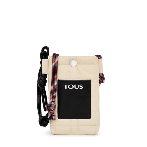 תיק יד מסדרת Empire Padded של TOUS בגודל זעיר, עשוי מניילון ממוחזר בצבע בז' עם עיטור עור סינתטי. סגירה מגנטית. כיס חזיתי פתוח. מחיצה פנימית וכיס פתוח בחלק הפנימי. רצועת הצלבה עם קשרים להתאמה. מידות (גובה x רוחב x עומק): 4 x 12 x 19 ס"מ.
